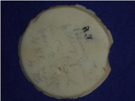 | Description / विवरण | Circular stone base of Container. The edges are mutilated. |