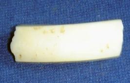 | Description / विवरण | Fragment of shell bangle having oval outer surface and ridged inner surface. |