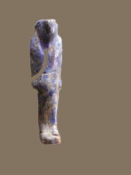 | Description / विवरण | The falcon headed god Horus is represented striding, left foot forward, arms at his sides, on an oblong base. He wears a short kilt marked only at the waist. The back pillar is pierced for stringing. The amulet probably represents the god Horus. |