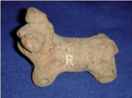 | Description / विवरण | Terracotta animal figurine, most probably a lion in sitting position. The tail and nose is partly missing. There are two holes in the legs of lion most probably use to fix the wheel with it. May be it was a part of a toy cart. |