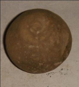 | Description / विवरण | Small terracotta bead with betel nut body and flat base. It has perforated hole in centre and surrounded with striation marks. It is semi fine and has a depression at base. The body is slightly rubbed off. |