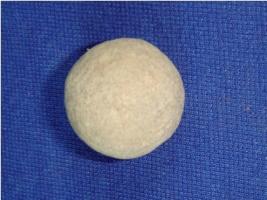 | Description / विवरण | Small stone sling ball, round in shape, having rough surface. |