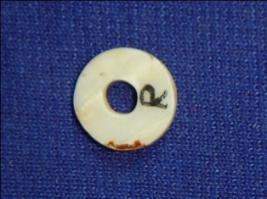 | Description / विवरण | Small spherical ivory bead, crimson white in colour with a perforated hole in the centre. |