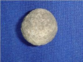 | Description / विवरण | Small stone sling ball, round in shape, having rough surface. |