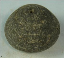 | Description / विवरण | Well made, perforated terracotta bead with pot shaped body and flat circular base. Close striation marks are prominent on the base. Small pits are seen on the upper part. |