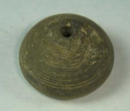 | Description / विवरण | Ill fired and broken terracotta bead without any perforation, with flat -circular base. |