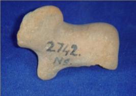 | Description / विवरण | Coarse terracotta animal figurine - humped bull with broken limbs, having hump on its back. The face is chopped off. |