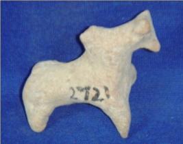 | Description / विवरण | Coarse terracotta humped bull with broken limbs, only right fore limbs is visible. It has pinched mouth, hump on back and prominent ears. |