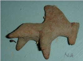 | Description / विवरण | Terracotta figurine of bull with prominent pinched hump. Tail is made by applique work with pellets. Ears are made by pinching and all four limbs were intact. |