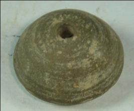 | Description / विवरण | Well made, perforated terracotta bead, betel nut in shape. Concentric circles are prominent on the whole body. |