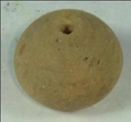 | Description / विवरण | Well made, perforated terracotta bead, betel nut is shape with a slight depression at the base. Some scratch marks are visible on the body. |