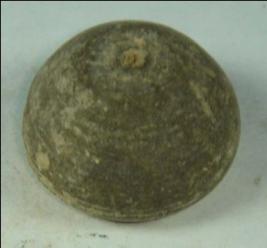 | Description / विवरण | Well made, perforated terracotta bead, betel nut in shape with a flat top. Concentric circles are prominent on the body. The base and part of the body is partially flaked off. |