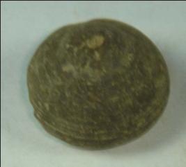 | Description / विवरण | Well made, perforated terracotta bead, betel nut in shape with a depression at the base. It is partially flaked off in the lower side. |
