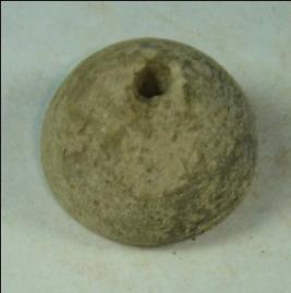 | Description / विवरण | Perforated terracotta bead, betel nut in shape, the top of which is slightly flaked off. |
