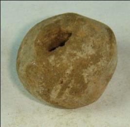 | Description / विवरण | Handmade, ill fired perforated terracotta bead with round body and rough surface. Clay incrustation is visible on the body. |