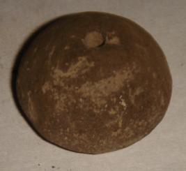 | Description / विवरण | Perforated terracotta bead, betel nut in shape. It is simple and the surface is rubbing off while handling. |