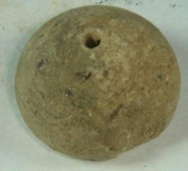 | Description / विवरण | Perforated terracotta bead, betel nut in shape. It is simple and slightly broken at two places at the base. |