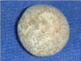 | Description / विवरण | Plain, coarse, spherical tiny ball, probably used as a sling ball. |