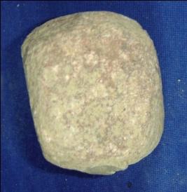 | Description / विवरण | Stone ball, irregular in shape, with rough surfaces. Clay incrustation all over. |