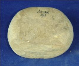 | Description / विवरण | Plain, circular, stone ball with rough surface. Two sides are flat and smooth. Part of it is broken. |