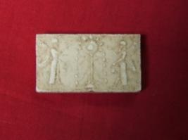 | Description / विवरण | It is a rectangular block made up of plaster having relief images of two saints with feathers attached on their shoulders holding Kamandals in their hands. A decorative special type of tree is placed in the center. |