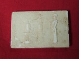 | Description / विवरण | It is a rectangular block made up of plaster having relief images of males and two pillars of short height. One has a half moon on the top and the other has a wheel on the top. |