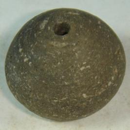 | Description / विवरण | Simple, perforated terracotta bead, bi -convex in shape. One side is flat with a circular depression in the middle. |