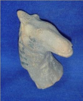 | Description / विवरण | Fine terracotta horse head with prominent facial features like - half open mouth, eyes and the mane. The neck is visible but rest of the parts are missing. |