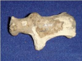 | Description / विवरण | Indigenous tiny terracotta humped bull, whose horns and limbs are missing. It has a prominent hump on the back. |