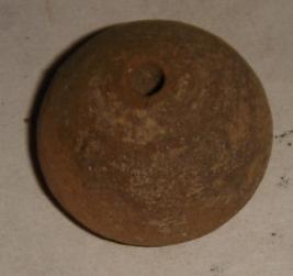 | Description / विवरण | Terracotta bead, with betel nut shape, perforated and depression at the base, surface is smooth. Clay incrustation at some part. |