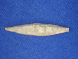 | Description / विवरण | Bone point with pointed ends and crimson white colour earthly incrustation all over. |