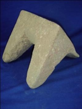 | Description / विवरण | Fragment of a stone, only half part of it is visible. It is rectangular in shape with two conical stands. Incised dots are made on the outer surface while other surfaces are rough. |