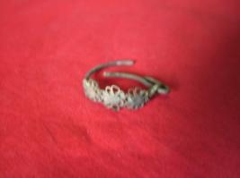 | Description / विवरण | An ear ring with broken hook, is carved in semicircular shape and decorated with three floral shape, ornamentation on the top. |