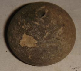 | Description / विवरण | Terracotta bead with betel nut shape, perforated and depression at the base, surface is smooth. |