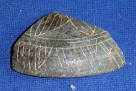 | Description / विवरण | Fragment of a stone plate only, the rim part is visible. The inner part is plain, while the centre surface has some incised line designs. |