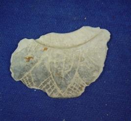 | Description / विवरण | Small fragment of stone vessel - flat thing flaked off portion with incised lotus petals and chequered designs in between the tips. |