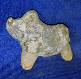 | Description / विवरण | Terracotta animal figurine of humped bull, mutilated facial features, prominent hump, left fore and hind limbs are broken, crudely finished. |