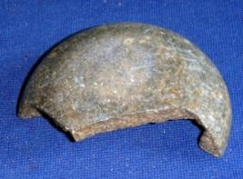 | Description / विवरण | Fragment of a stone vessel, semi circular in shape, with flat, circular inner base. |