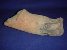 | Description / विवरण | Fragment of an animal figurine. It is probably one of the limbs of the animal. The lower portion of the limb is black in colour and rest is red. |