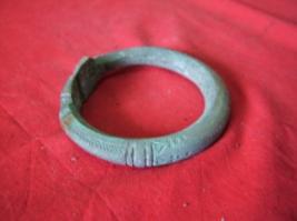 | Description / विवरण | It is a foot ornament having engraved dots and checks. It is also engraved with geometrical diagonal line. |