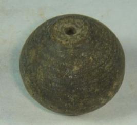 | Description / विवरण | Terracotta perforated bead, pot shaped body, depression at base, surface is rough, clay incrustation all over. |
