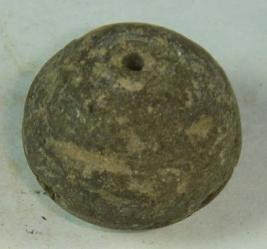 | Description / विवरण | Perforated terracotta bead, betel nut shape, surface is smooth, clay incrustation all over. |