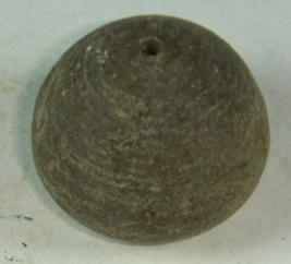 | Description / विवरण | Perforated stone bead betel nut shape, surface is smooth but broken, clay incrustation all over. |