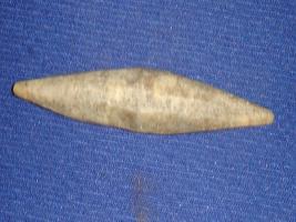 | Description / विवरण | Bone point, having pointed ends with ridges on its circular body. |