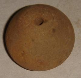 | Description / विवरण | Terracotta bead betel nut in shape perforated at the centre with close striation lines. |