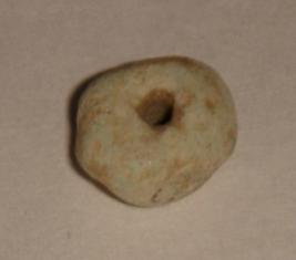 | Description / विवरण | Stone bead, circular in shape with a perforated hole at the centre. |