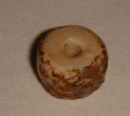| Description / विवरण | Stone bead, circular in shape with flat base and top and a perforated hole at the centre. |
