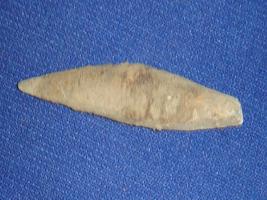| Description / विवरण | Bone point with pointed ends, having ridges on the body. One side is broken. |
