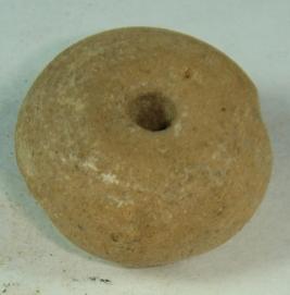 | Description / विवरण | Terracotta bead with betel nut in shape, perforated at the centre, broken from top having rough surface. |