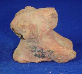 | Description / विवरण | Coarse terracotta animal figurine of a Ram. Horn is present but in broken condition, eyes are visible, only its half portion up to for limbs is visible. |